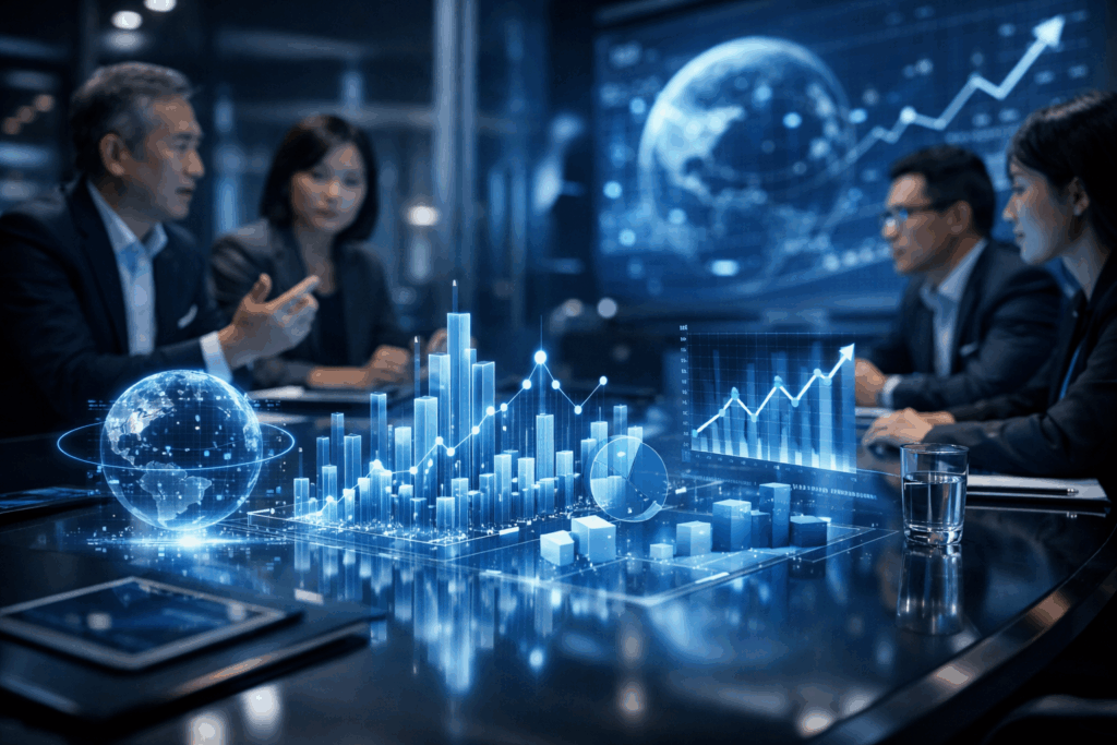 AI 應用正從自動化流程轉向高層次的「決策輔助系統」。透過整合市場數據、消費者行為與企業內部營運資料,AI 可以協助評估市場趨勢、投資風險與商業機會。全球 AI 市場規模快速成長,企業正從「小規模測試」轉向「全面導入」,未來企業競爭的差距,將來自誰能更有效地利用數據與 AI 進行決策。